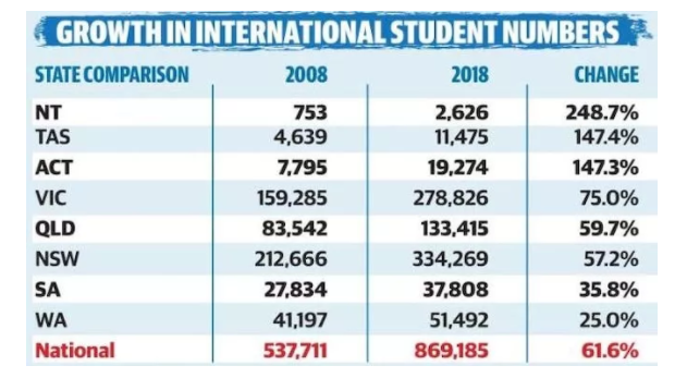 这无疑意味着,西澳也错失了巨大的财政来源。毕竟,2018年,全澳的869000名国际学生为澳洲全境贡献了三百多亿的收入。而西澳只占据了51000澳元.