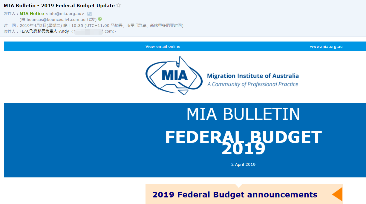 4月2号,澳洲政府正式发布了2019-20年度的财政预算案,并且披露了部分移民信息,同时,我们也从澳洲移民协会(MIA)来信中证实了这些信息。