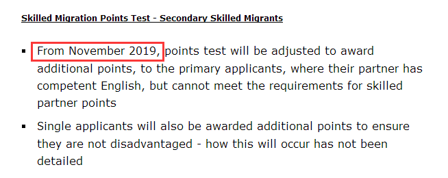 目前的加分规则是:配偶英文达到competent+提名职业与主申在同类清单上且通过职业评估+年龄45岁以下。