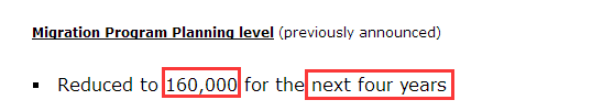 2. 接下来的4年移民配额都会是16万。