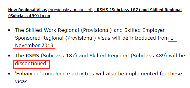飞克温馨提醒大家:如果这个政策一旦实施,这意味着489偏远地区州担保签证和187雇主担保签证将成为历史!想要申请这两个签证的需要赶在今年11月1日之前递交签证申请!