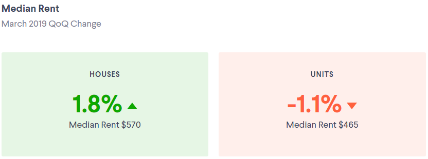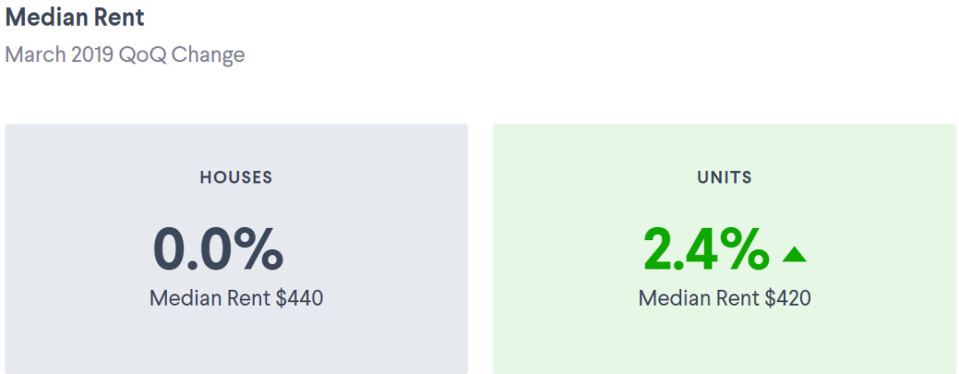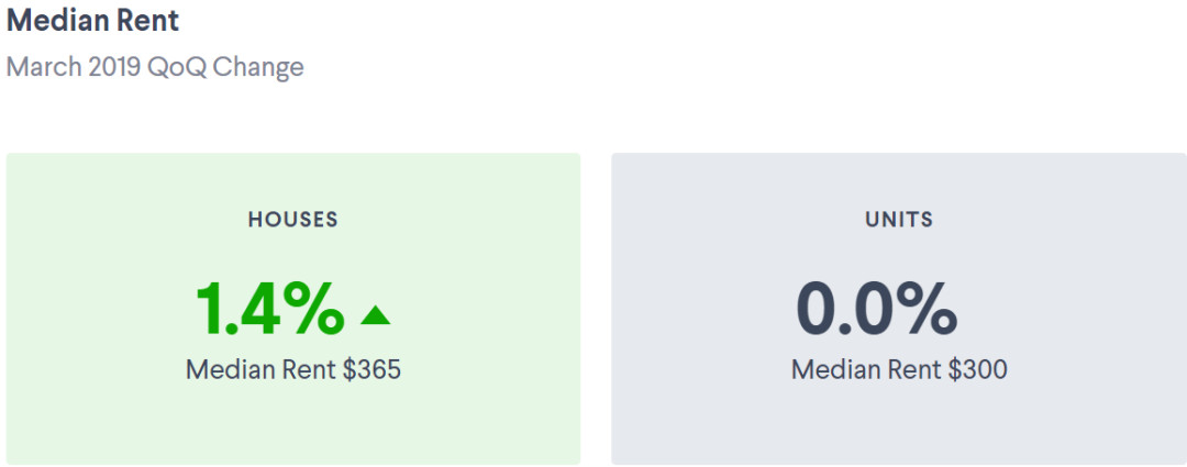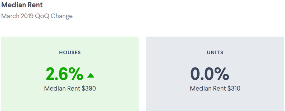 转向住房,不管是house还是unit,达尔文市空房率都是全澳最高的,其租金也一直最稳定,但却不低。目前house的中位数为$500,unit的中位数为$400。