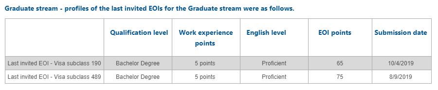 飞克分析:只有本科学历,必须搭配一年相关工作经验。这个相关经验也会有5分的加分。因为4个7是申请西澳190的必备条件。所以基本上60分就是一毕业基本就有。再加上190州担保的5分加分。那65分就获邀。