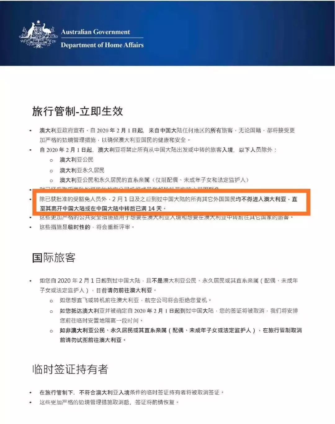移民局的最新文件也表明,在离开大陆14天后可以入境澳洲。