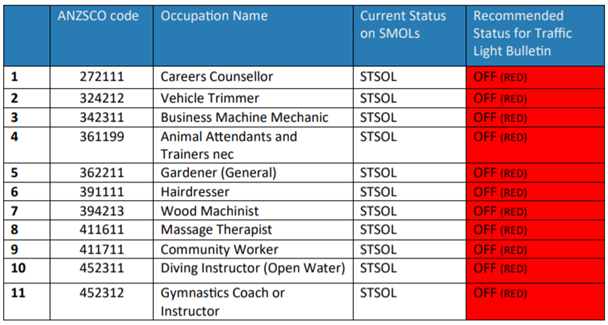 职业清单目前所在的阶段是:就业部已经将修改建议提交给移民局了。