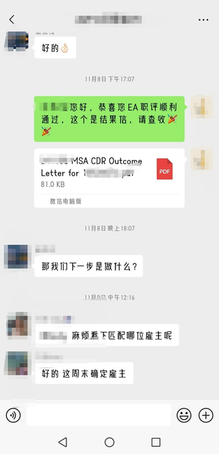 客户于2024年11月1号递交职评,2024年11月8号无补料顺利通过。申请过程中,文案耐心指导客户提供CDR素材,帮助客户撰写详细的推荐信并指导客户提供其他相关材料,最终顺利通过职评。