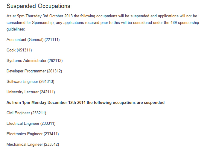 NSW官网总职业清单列表里面有些地区489清单并未跟上地区官网更新的速度,现NSW官网的清单仍是2014年10月3日的版本,而比如 Southern Inland 在2014年12月12日有职业关闭的,总表上没有及时更新(如图),现小编根据地方官网的信息将NSW总清单更新了一遍,大家可以点击查 看:http://andyyimin.com/index.php?z=spage&c=index&a=53 。