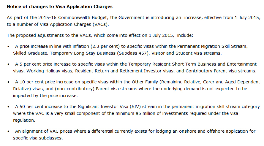 随着2015-2016年联邦预算的出台,移民局将于2015年7月1号开始酌情上调部分签证申请费。