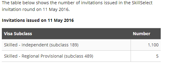 今日,移民局发布了5月11日EOI邀请结果数据。