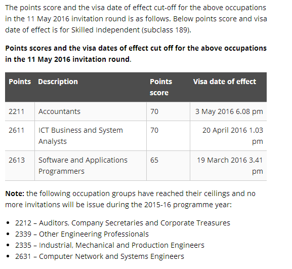 由于移民局收到以下职业的大量的EOI, 以下职业的邀请将每个月两次按比例来发放: