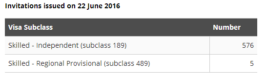 移民局已发布了6月22日EOI邀请结果数据。共发出Skilled - Independent (subclass 189)邀请576份,Skilled - Regional Provisional (subclass 489)亲属边远地区担保邀请5份。