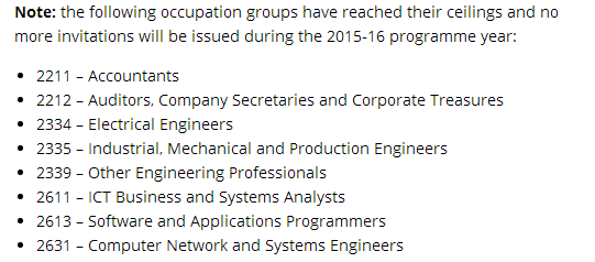 由于高水平的需求,下面的三个职业群体将受按比例安排确保整个计划每年邀请可用性: