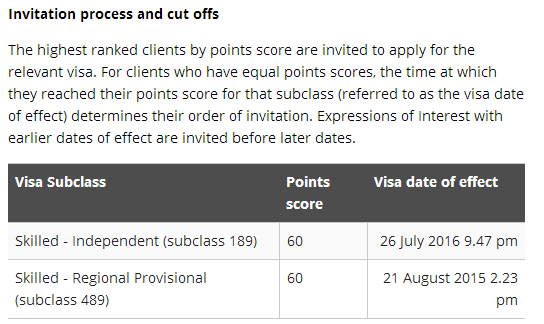 Invitation process and cut offs