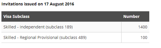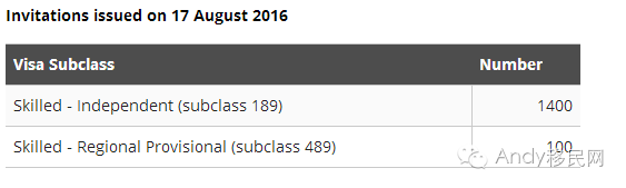 移民局8月23日发布了8月17日EOI邀请结果数据。该轮邀请189配额邀请了1400个,Skilled - Regional Provisional (subclass 489)亲属边远地区担保邀请了100个。