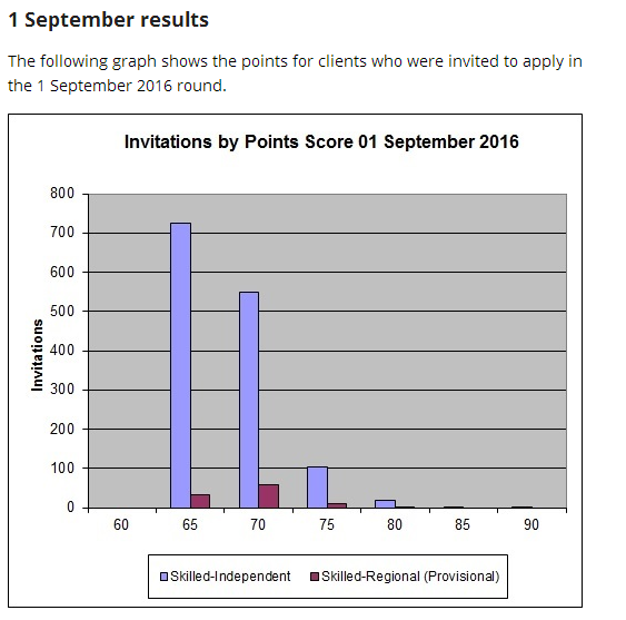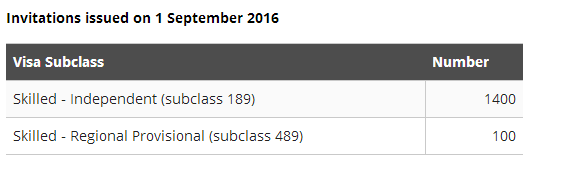 移民今日发布了9月1日EOI邀请结果数据。该轮邀请189配额邀请了1400个,Skilled - Regional Provisional (subclass 489)亲属边远地区担保邀请了100个。