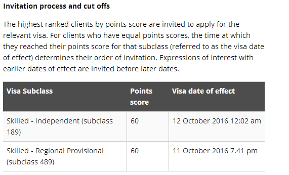 移民局今早发布了10月12日EOI邀请的官方结果报告。该轮邀请189配额邀请了1204个,(subclass 489)亲属边远地区担保邀请了54个,这与原定的都有一定差距。