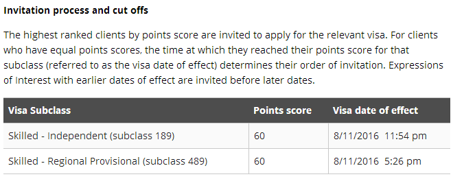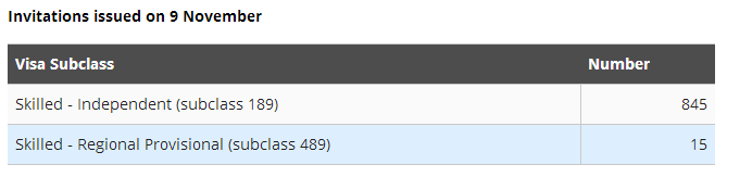 移民局今日发布了11月9日EOI邀请的官方结果报告。该轮邀请189配额邀请了845个,(subclass 489)亲属边远地区担保邀请了15个。