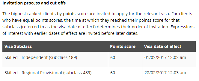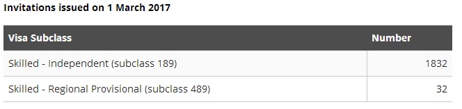 今日移民局发布了3月1日EOI邀请的官方结果报告。该轮189配额邀请了1832个,(subclass 489)亲属边远地区担保邀请了32个。
