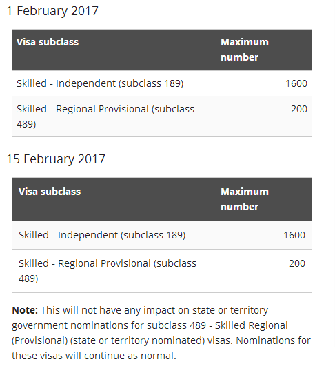 2017年2月份移民局EOI邀请第一轮将于2月1日发出,第二轮将于2月15日发出。分别都将发出1600份189签证邀请,200份489签证邀请。