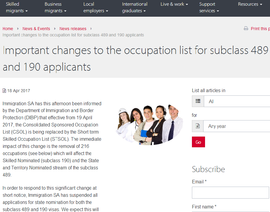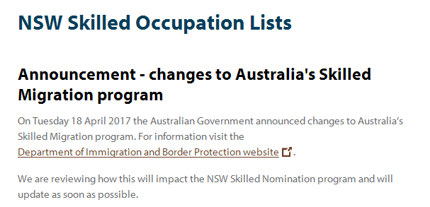 目前,ACT、SA、VIC、NSW均已经在官网公告将使用新的职业清单,其他州预计也将在这几天陆续更新。