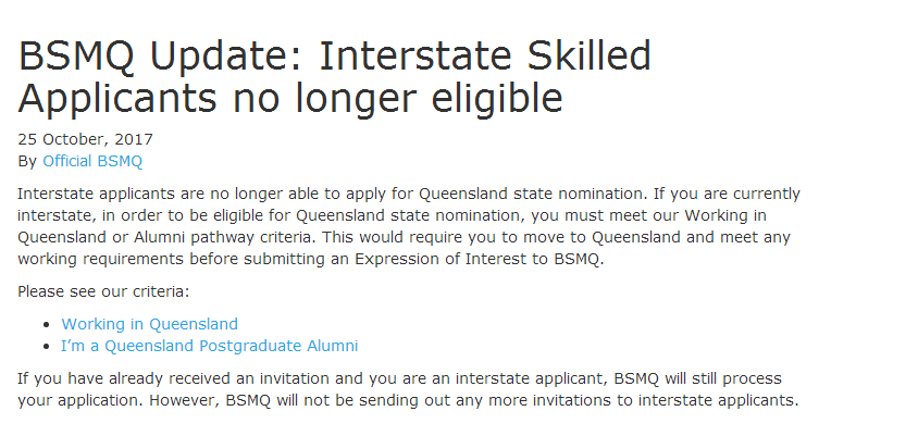 如果你是外州申请人,并且已经收到了昆州的州担保邀请,将不受本次政策更新的影响。但今后昆州将不会再给外州人发放邀请了。