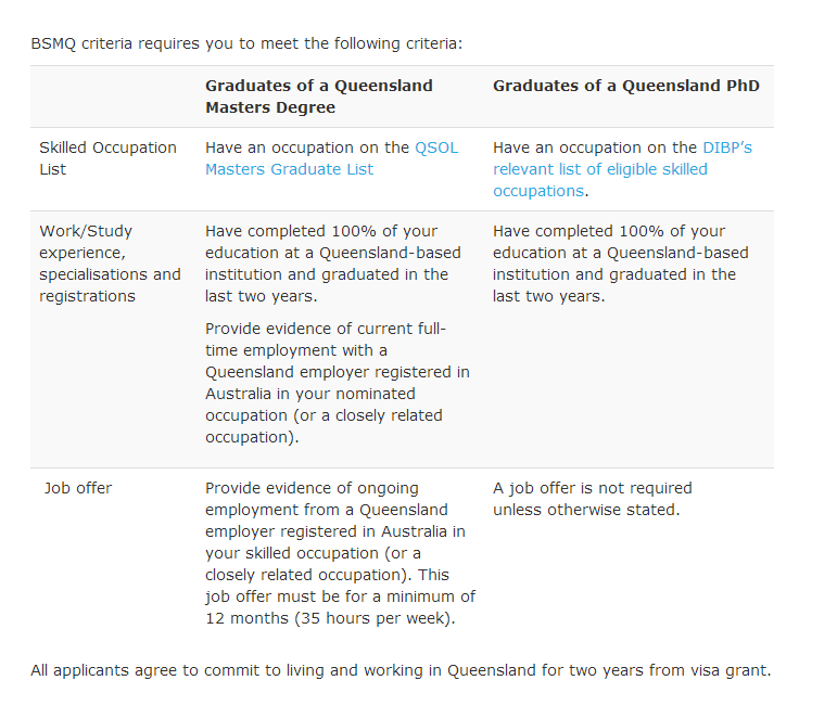其中, 硕士毕业生除了要满足学历要求,还需要提供12个月以上的全职工作job offer。硕士和博士毕业生获得签证后,也同样需要在昆州居住和生活两年。