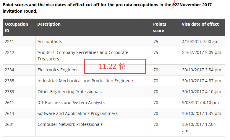 本轮只有75分以上的申请者获邀,达到222人,80分获邀者有78人。由于本轮邀请数量相较之前大大减少,只邀请了少数热门职业,没有70分的获邀者,对分数不高的移民朋友来说,形势不容乐观。