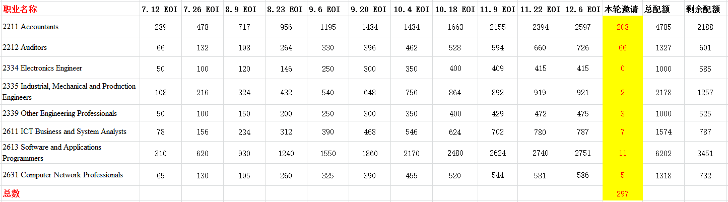 就在小编编辑完上篇EOI官报,以为那应该是本年度最后一篇官报的时候,移民局又以迅雷不及掩耳之势公布了12月6日的EOI邀请官方数据。真是一反常态的高效率啊,貌似是要在放假前将官报一次都公布似的!<此处是小编的忙碌脸(๑• . •๑)>
