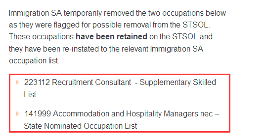 另外,继1月17日内政事业部(原移民局)更改职业列表后,南澳也调整了其移民职业列表。