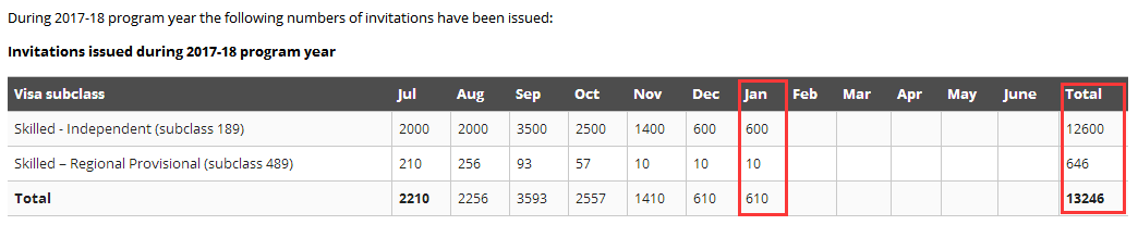 2017-18年度截至本轮:189独立技术移民共邀请了12600人,489偏远地区亲属担保为646人。