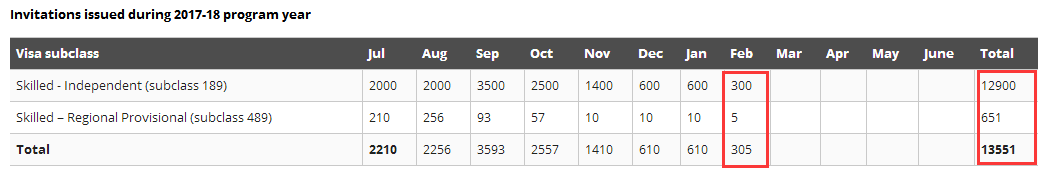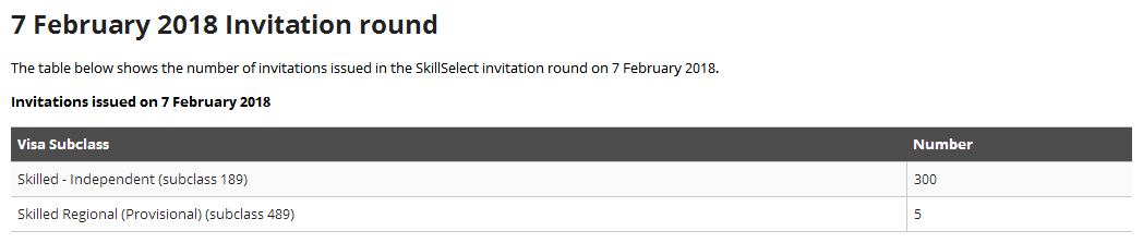 2月7日EOI邀请的189独立技术移民人数依旧是300人, 489偏远地区亲属担保仅有5人。