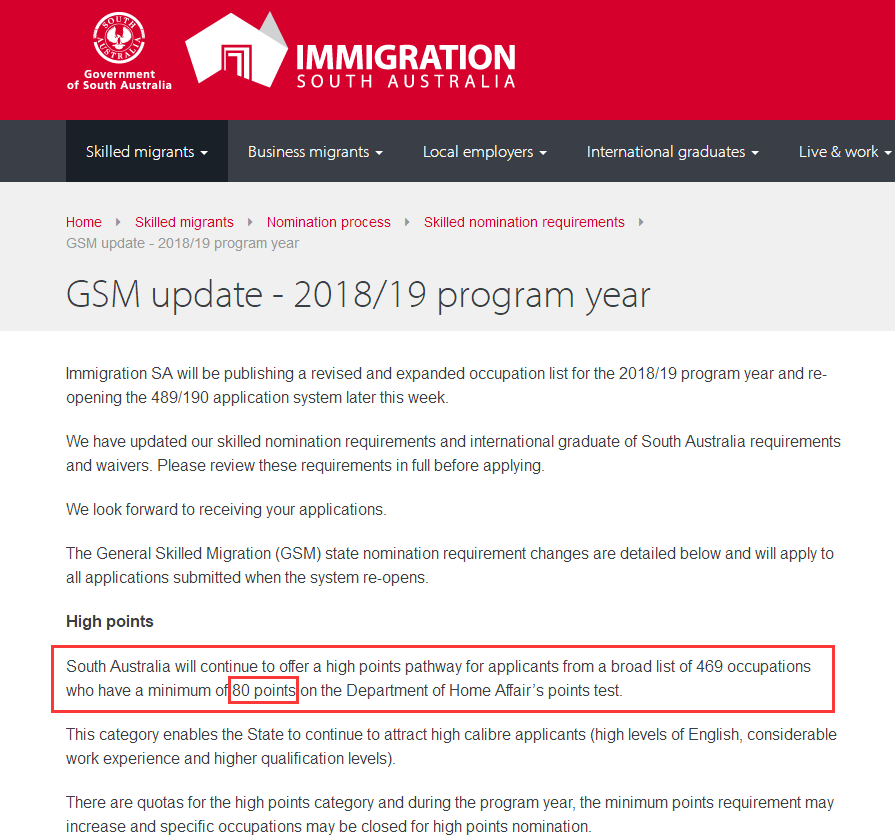此类别为南澳州政府希望持续吸引高素质的申请人(高水平的英语,可观的工作经验和更高的资格水平)所设立。原来要求EOI达到90分,现在降为80分即可申请。
