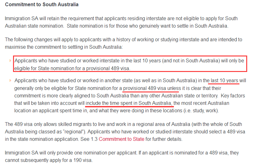 过去10年内在其他州工作或学习过的申请人只能申请489签证(年限增长);