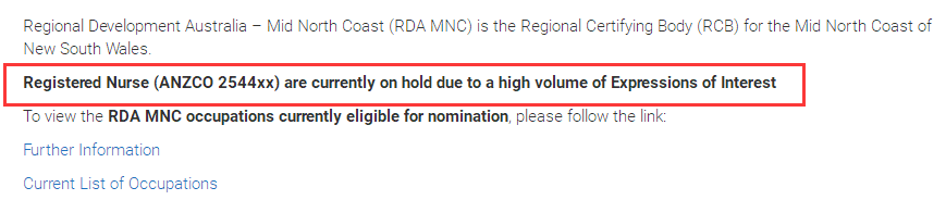 由于申请人数较多,Mid North Coast暂停了护理类2544系列职业的担保。