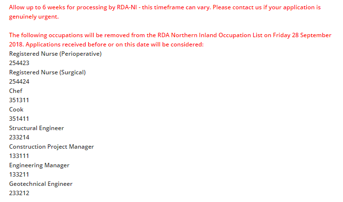 9月25日,Northern Inland于网站通知:254423和254424将于9月28日被删除,然而,时隔一天,其网站就宣布又有另外6个职业将被删除,而且还有几个是比较热门的职业,想必也是因为这些职业快满额的缘故吧!所以大家一定要尽早递交申请啊!