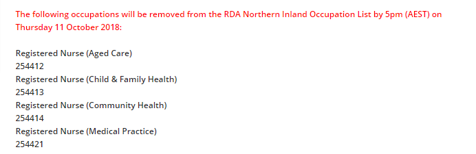 今日,新州Northern Inland 在官网发出通知,10月11日下午5点后(澳洲东部标准时间),Northern Inland职业列表中将有4个职业被剔除: