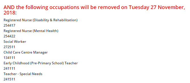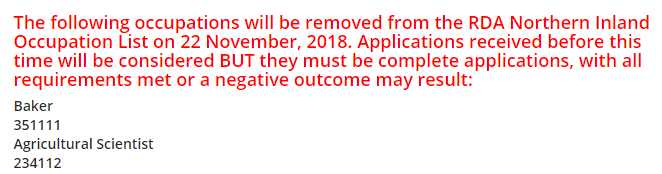今日,Northern Inland 又发出通知,11月27日即下周二将有6个职业被删除: