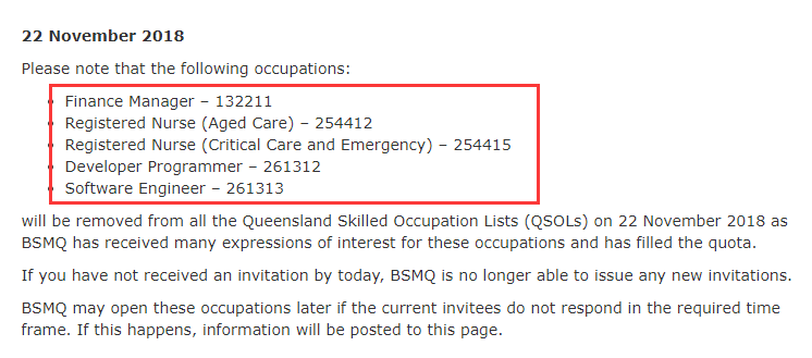 昨日,昆州官网宣布:因收到大量申请,导致配额已满,有五个职业被移出昆州职业列表,无法再申请昆州州担保!