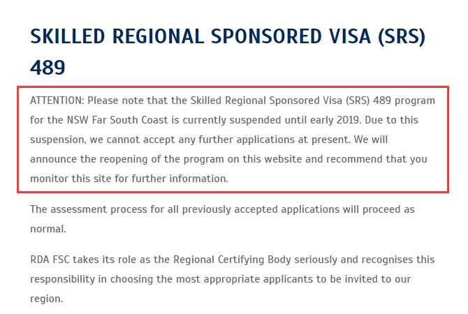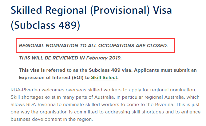 今日Riverina官网宣布:暂时停止所有职业的489担保。具体的开放时间没有说明,需要等后续通知。