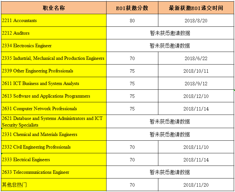 今日凌晨,澳大利亚内政部按时发放了12月份的EOI邀请,是2018年最后一次邀请,也是2018-19财年总第六轮邀请。那么这一轮发放了多少个邀请呢?结合我司客户及各论坛网友的情况,这一次的EOI情况不太理想,发放的邀请大大减少,各专业推进缓慢!