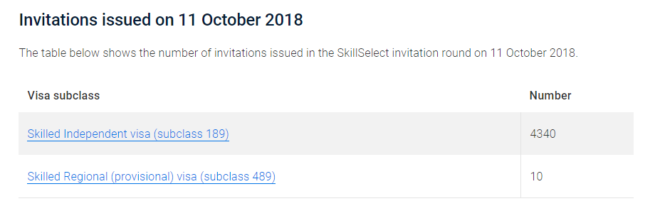 此轮189独立技术移民邀请了4340人,比9月11那轮多邀请1850人;489偏远地区亲属担保邀请了10人。