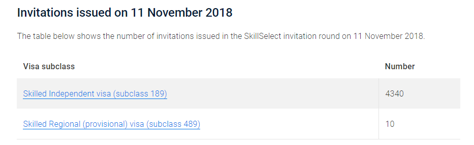 此轮189独立技术移民邀请了4340人,与上轮持平;489偏远地区亲属担保邀请了10人。