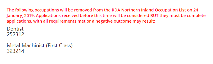 Northern Inland官网通知1月24日将删除以下2个职业:
