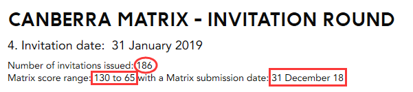 Canberra Matrix第四轮邀请结果出来了,最低分数依旧保持65分!