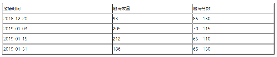 3. 分数方面:随着前三轮分数的持续降低,本轮邀请停止了这种趋势,最低分保持不变,并且最高分还增长了20分。小编认为有部分申请人为了早日获邀而积极凑分导致分数有所增长是可以理解的,但是130分的高分应该大部分人还是很难达到的。无论如何,大家要保持积极的心态,努力去凑分,但是切记不要造假!