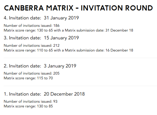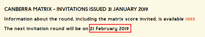 1月份堪培拉总共发放了3轮邀请,下轮邀请在2019年2月21日,请耐心等候。