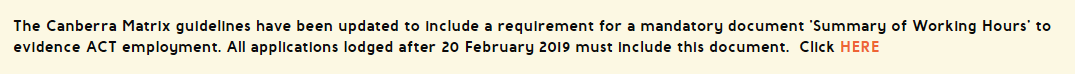 堪培拉政府特别提醒:今日起递交申请必须要填写“Summary of Working Hours form”,在这个表格中必须详细地填写在职情况,否则没有填写这份表格将会被ACT政府直接拒签!