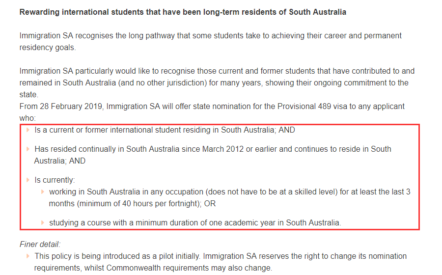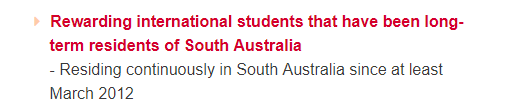 这项政策主要针对:从2012年3月或更早开始连续居住在南澳的国际学生。