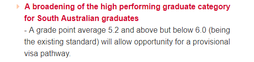 这项政策主要针对:GPA高于5.2但低于6.0分的南澳毕业生。这部分学生将有机会申请临时签证,也就是489签证。