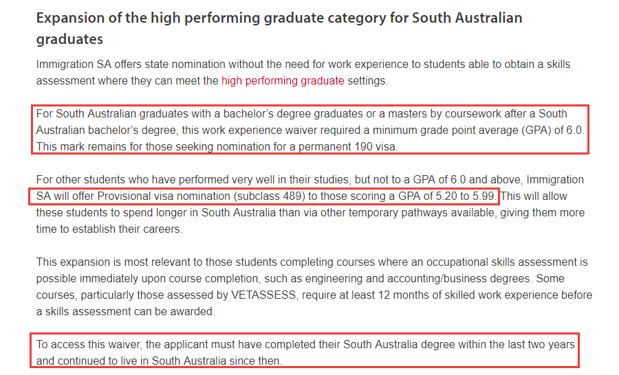 根据新的政策,南澳优秀本科毕业生和硕士毕业生(硕士之前的本科也必须在南澳完成)可豁免工作经验。
